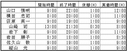 勤務時間帯の入力を、後でグラフをうまく表示するため、図のように