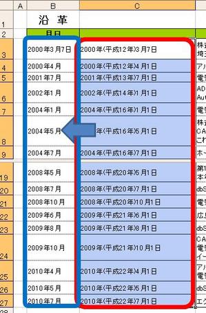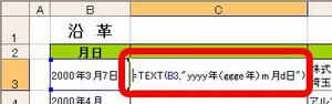 =TEXT(B3、"yyyy年(ggge年)m月d日") ※ggge・・・和暦