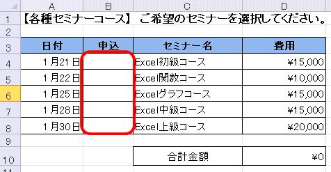 【設定前】 「申込」の列にチェックボックスを作ります。