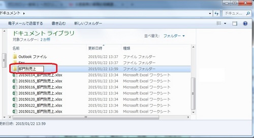 6.名前をつけたフォルダ「部門別売上」に、ブックをすべて移動します。
