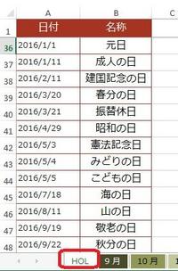 ※同じブック内のシート名「HOL」に「祝日一覧表」があって、そこを指定しています。