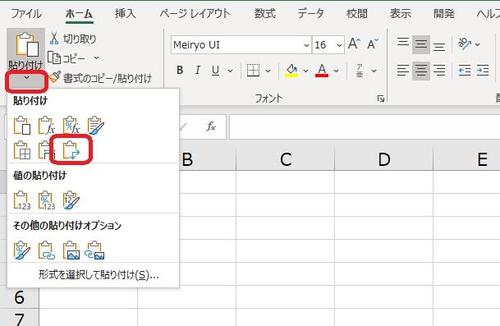 2.別のシートか他のセル(表以外の場所)を選択して「貼り付け」の▼を押し「行/列の入れ替え」を押します。![]()