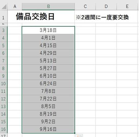 決まった間隔で行う作業(備品の交換日や打ち合わせの日など)って、よくありますよね。
