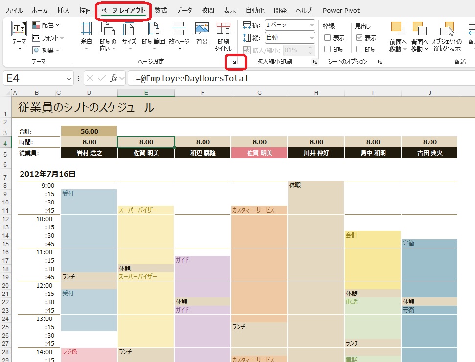 1.「ページレイアウト」ー「右下矢印(下図右の赤枠)」を押します。