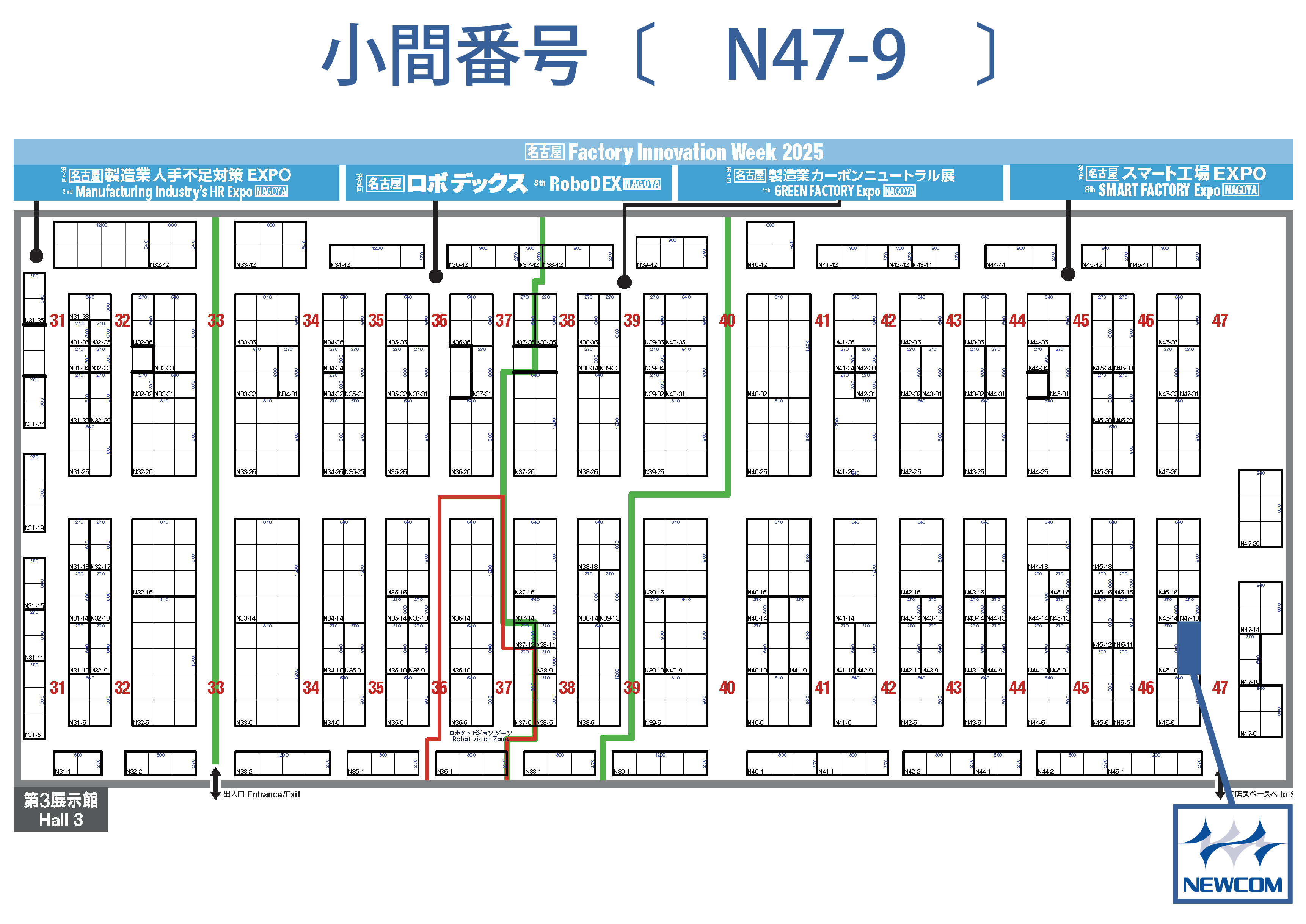 ニューコムブースの小間番号: N47-9 ( 3号館 ) |