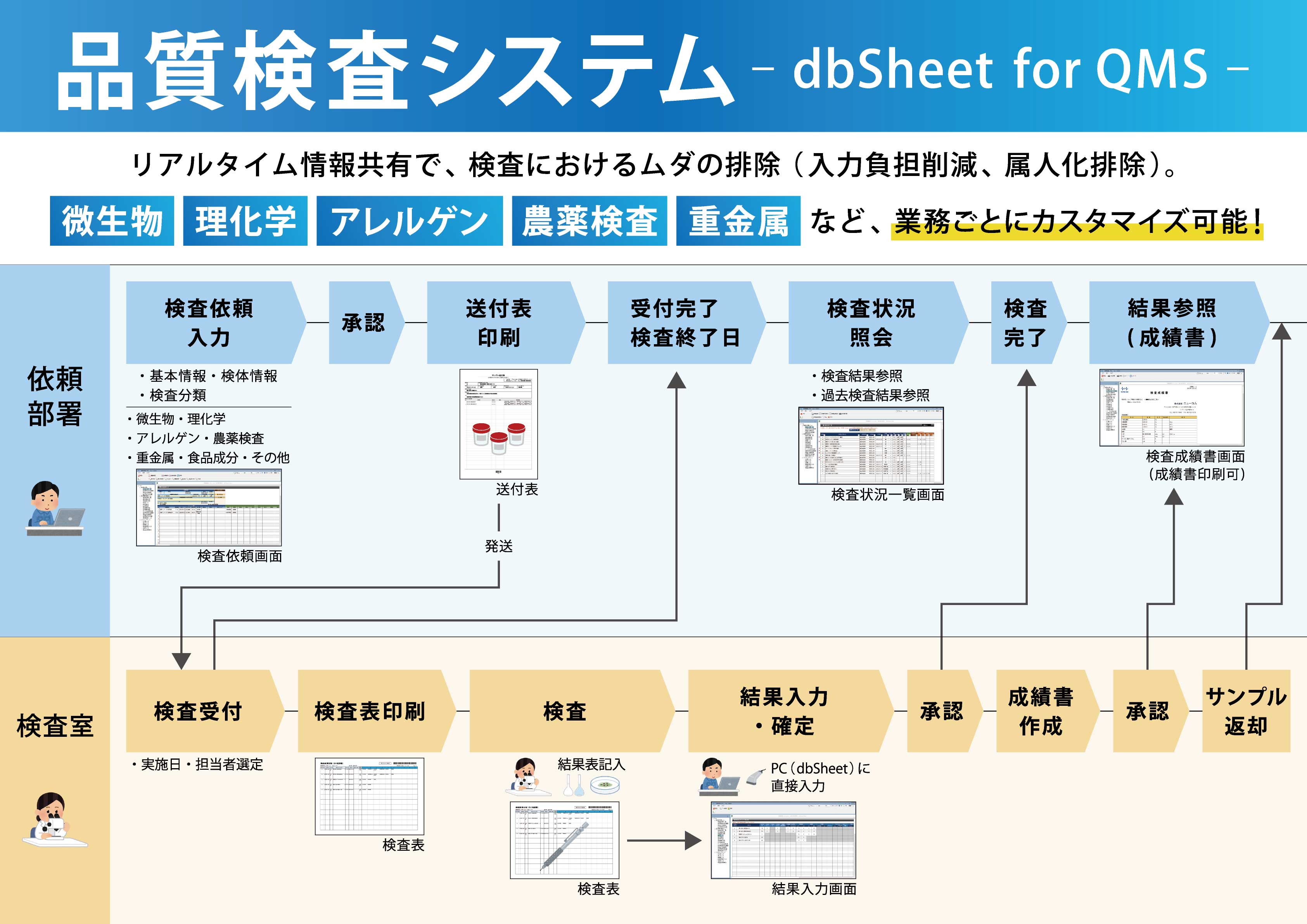 今回は、食品製造業様に向けて、食の安全に関わる品質検査システム(dbSheet for QMS)を出展いたします。