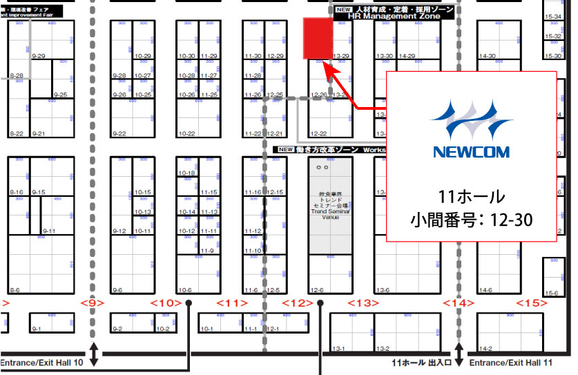 ニューコムブースの小間番号: 12-30( 11ホール ) |