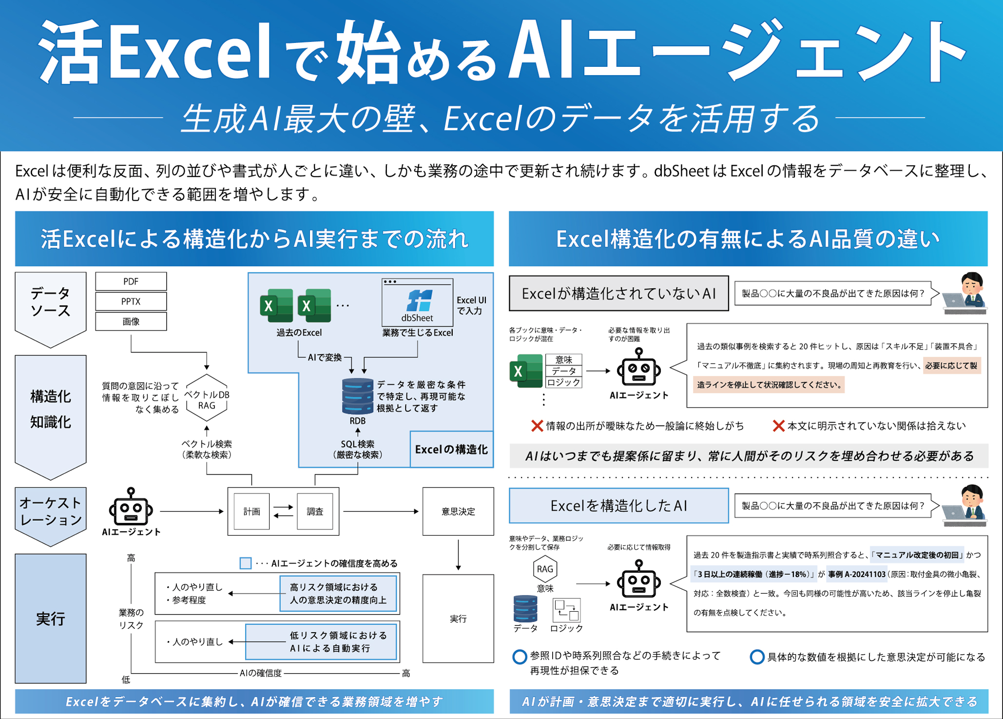 本展示会では、慣れ親しんだExcel画面を活かした、各種システム(Salesforce、SAP等)との連携事例をご紹介いたします。また、「活Excelで始めるAIエージェント」として、生成AI最大の壁、Excelデータを活用したデモもご紹介いたします。