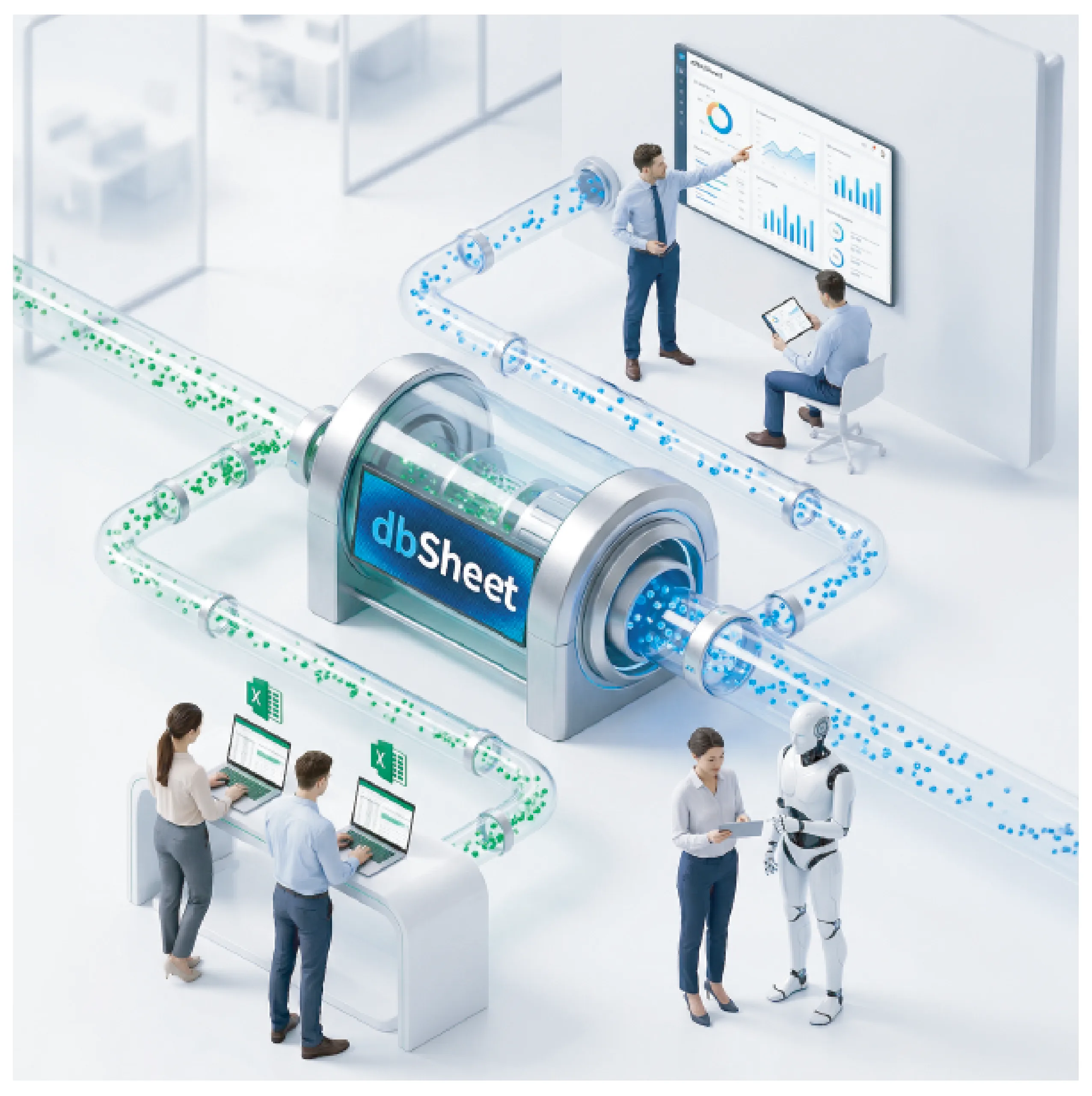dbSheet EX11は、現場のExcelデータを構造化し、DX、AI・BI活用、検索、意思決定の精度向上につなげるデータ基盤です。