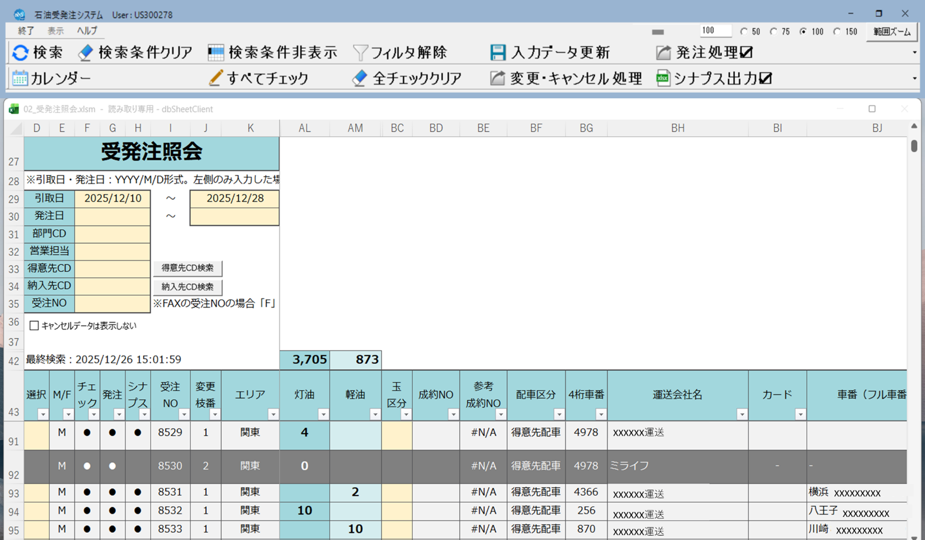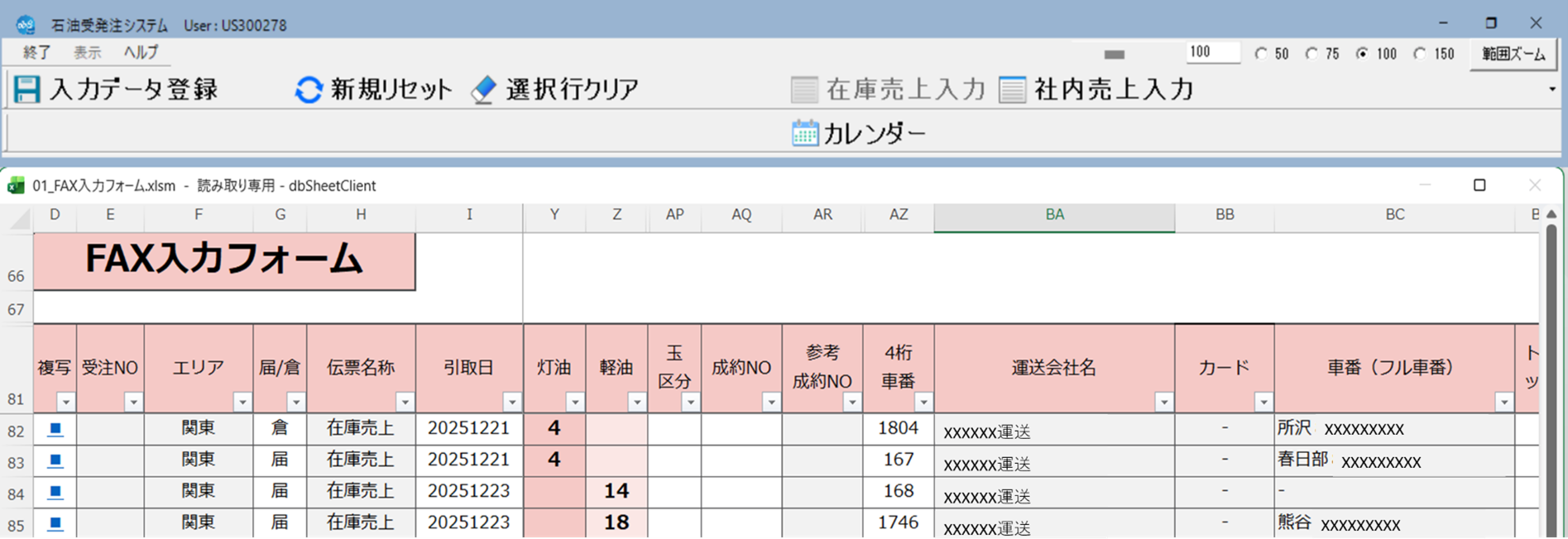 データベースで受発注情報を一元管理する事で、燃料油の受注から発注