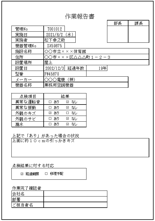 ・過去の点検結果を併記した報告書様式