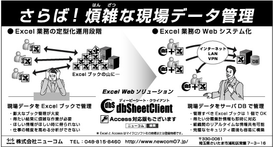 「dbSheetClient Access対応版」で連載している「SEのシステムフォロー体験記」ですが、今年から名称を変更させていただきました。新名称は「仙ちゃんのシステムフォロー記」となります。今後ともご愛読いただきますようお願いいたします。