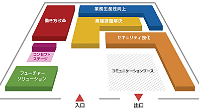 このイベントでは、“働き方改革”をはじめ、お客様が抱える様々な課題の解決に貢献するソリューションを、5つのゾーンでご覧いただけます。